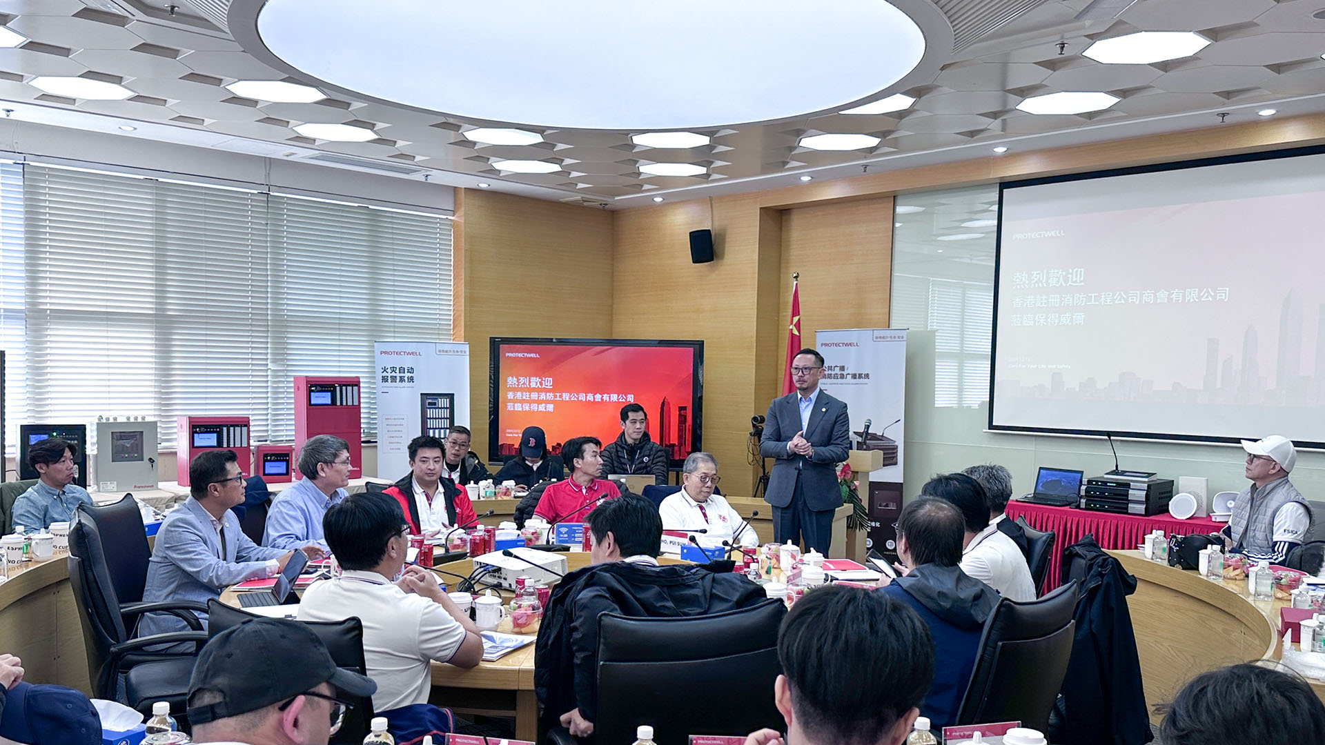 为增进粤、港两地消防行业的相互了解,2024年12月3日,香港注册消防工程公司商会有限公司会携商会三十多位香港消防业界专业人士对保得威尔参观考察,双方进行了深入交流。