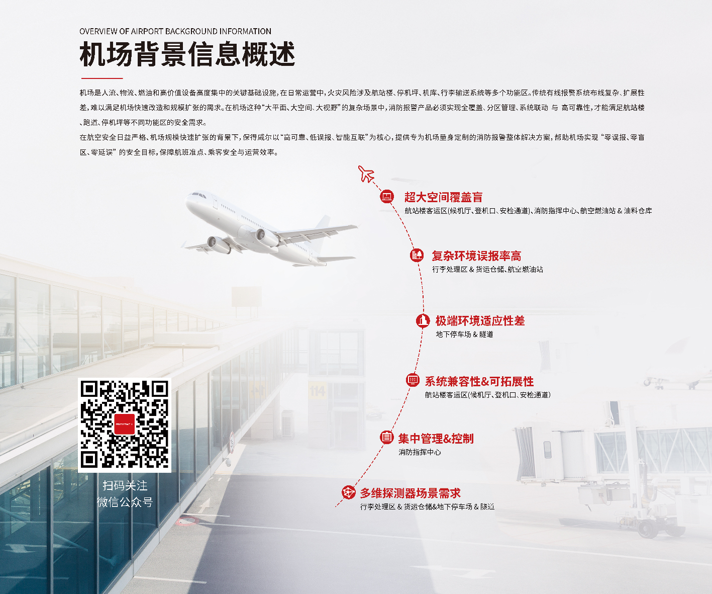 机场作为人流、物流高度集中的关键基础设施,传统消防系统难以满足其“大平面、大空间、大视野”的复杂场景需求。